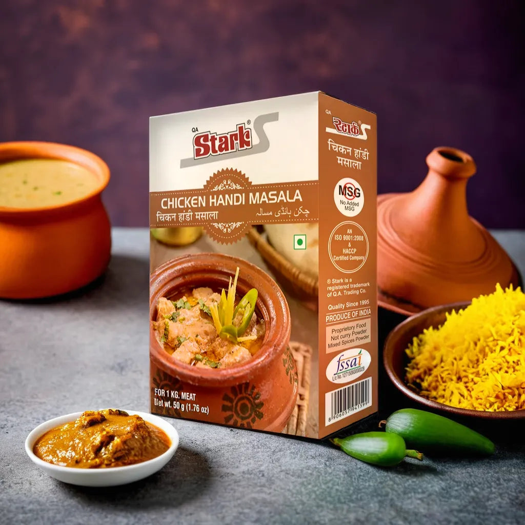 Discover the secret to an irresistible Chicken Handi with our authentic masala blend. Packed with aromatic spices and natural ingredients, this mix captures the essence of traditional South Asian cooking. Skip the guesswork and bring restaurant-quality flavor to your kitchen - our Chicken Handi Masala makes it easy to create a rich, creamy dish that'll have everyone asking for seconds. Perfect for busy cooks or seasoned chefs alike, just add this to your chicken and enjoy the magic unfold. No artificial preservatives, just pure, delicious taste in every bite. Add it to your next family dinner or impress guests with minimal effort. Grab your Chicken Handi Masala today and let the cooking begin!